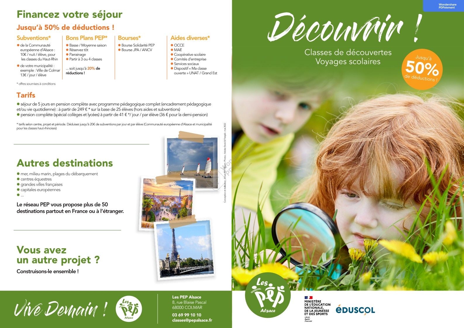 Le séjour scolaire doit s’inscrire dans le cadre du projet d’école. Il s’agit d’une organisation pédagogique et administrative, pour laquelle les PEP Alsace vous accompagnent afin de vous apporter aide et conseil.