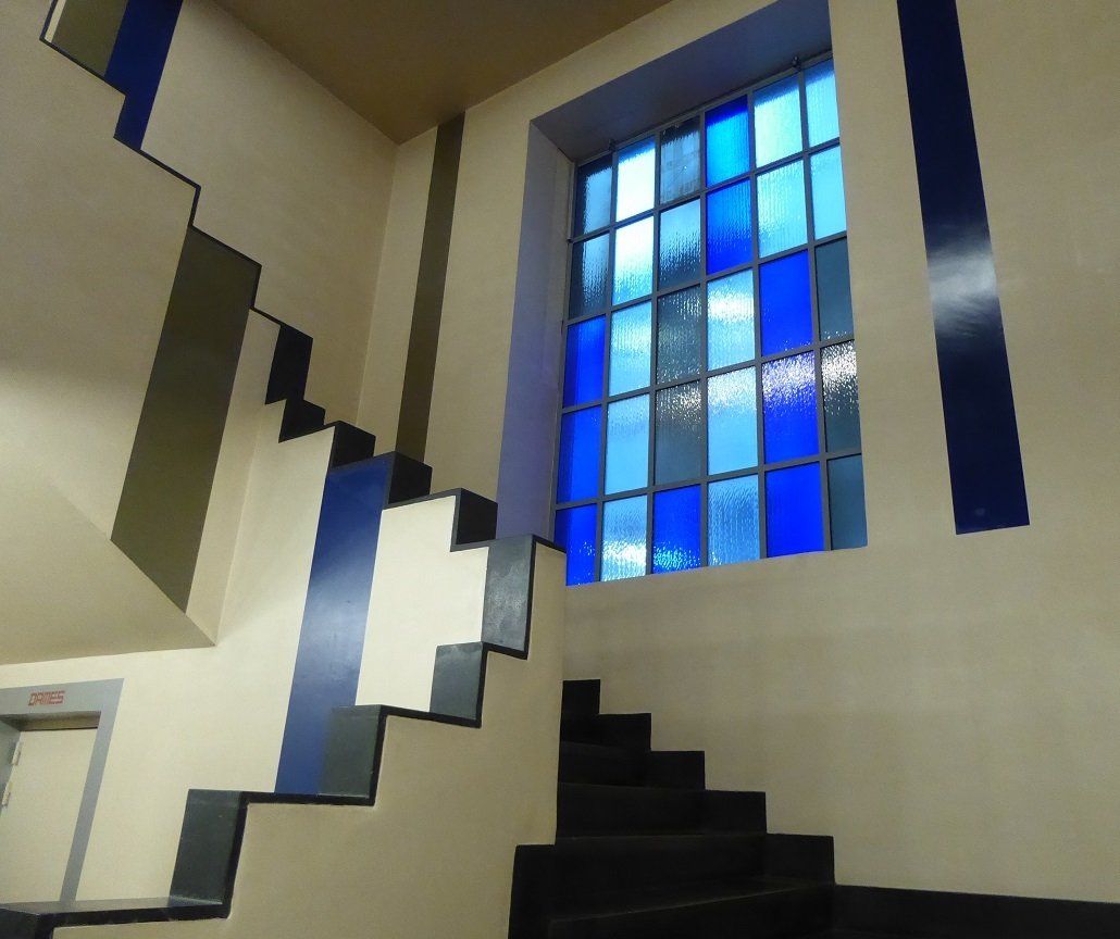 C’est dans un esprit d’avant-garde que Theo Van Doesburg, Hans Jean Arp et Sophie Taeuber-Arp réalisent en 1928 les décors du complexe de loisirs de l’Aubette.